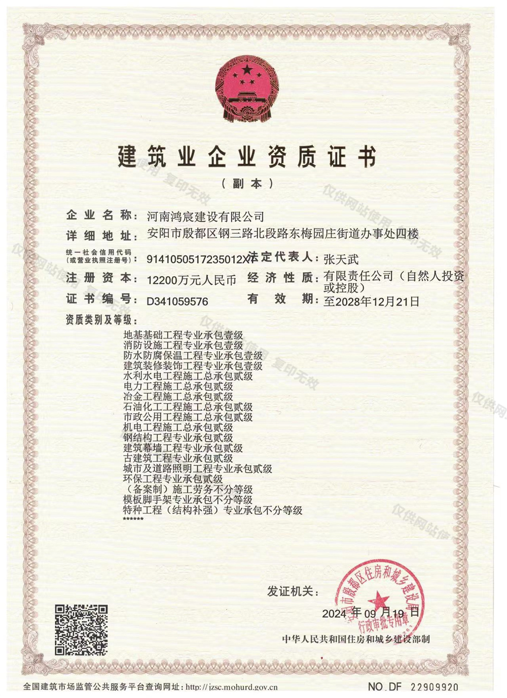 河南鴻宸建設(shè)有限公司成立于1973年10月,位于中國(guó)七大古都之一、甲骨文的故鄉(xiāng)、豫晉冀三省交界地區(qū)區(qū)域性中心城市——河南省安陽市,是一家集房建、工建、鋼結(jié)構(gòu)、地基、市政工程、機(jī)電安裝、水利水電、古建筑和裝飾裝修等為一體的綜合性建筑企業(yè)。現(xiàn)擁有建筑工程施工總承包、防水防腐保溫工程專業(yè)承包、建筑裝修裝飾工程專業(yè)承包、消防設(shè)施工程專業(yè)承包和地基與基礎(chǔ)工程專業(yè)承包一級(jí)資質(zhì)等多項(xiàng)資質(zhì)。公司注冊(cè)資金1.22億元,現(xiàn)有中高級(jí)職稱專業(yè)技術(shù)人員和注冊(cè)建造師260余名,擁有專業(yè)鋼構(gòu)加工廠和各種大中型施工機(jī)械設(shè)備。公司為質(zhì)量、環(huán)境、職業(yè)健康安全三標(biāo)一體認(rèn)證企業(yè)。